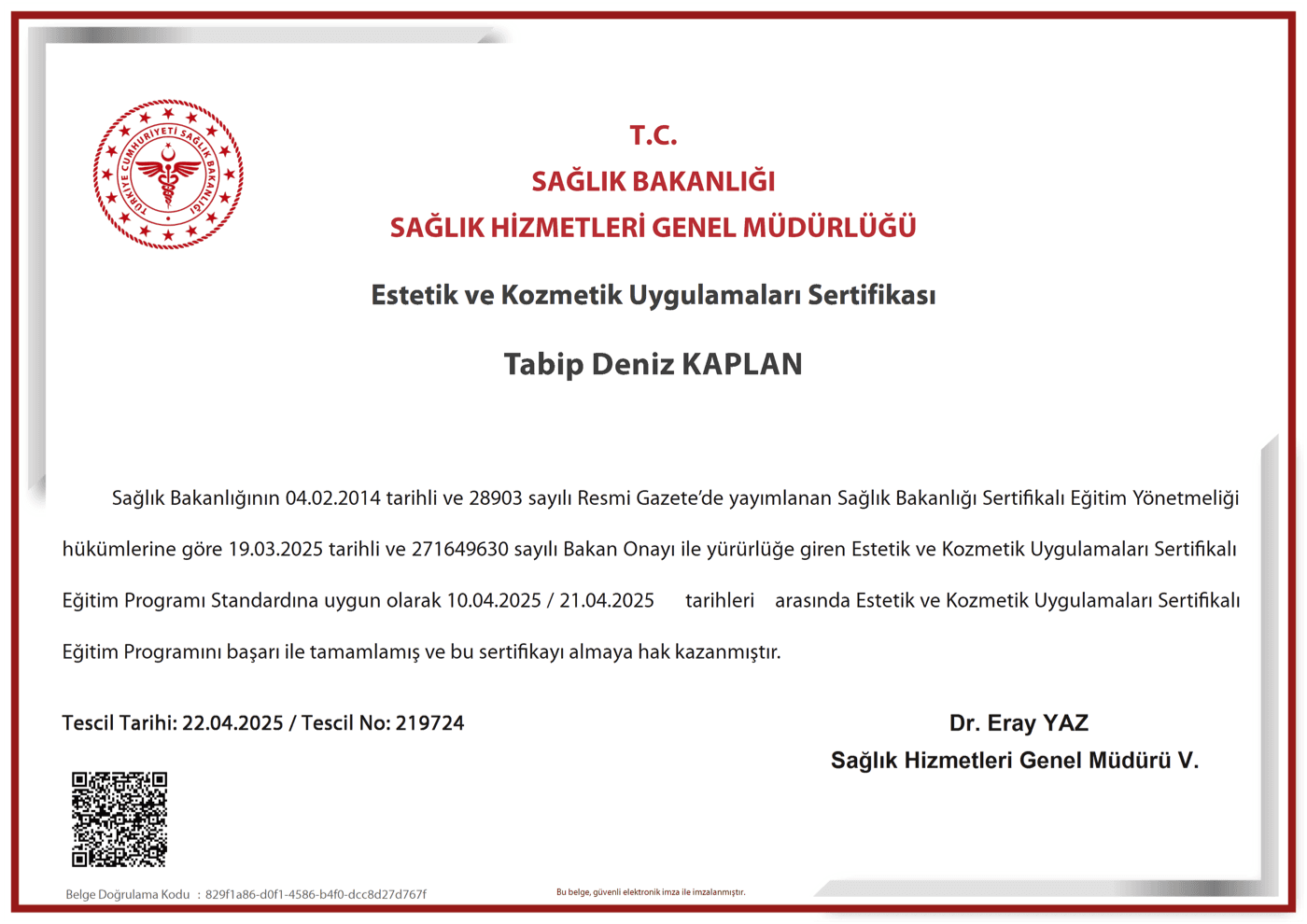 Dr. Deniz KAPLAN Hakkında